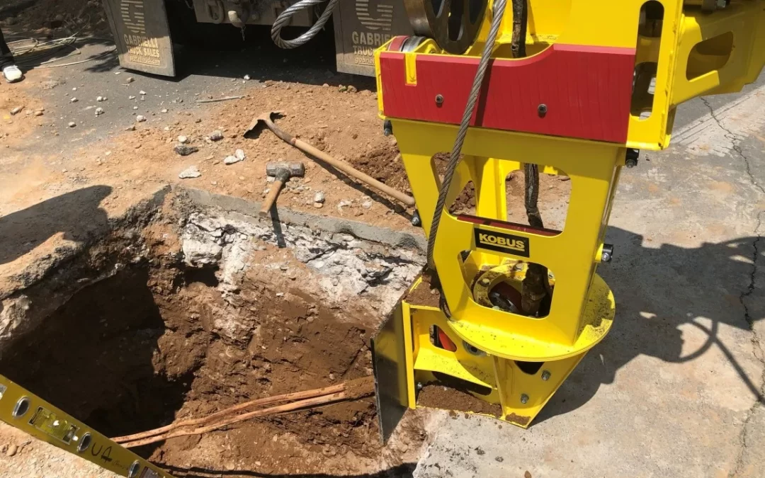 As mentioned above, first day we replaced three services with minimal excavation at main (3x3ft) and meter. As there were other works required, the riser was excavated out, so we pulled all on straight line this time. There were no issues and all three pulls were perfect in times of 3 to 3.5 minutes each. Due to the 360° foot rotation of the KPP400, the road was kept open at all times and all health and safety measures where in place by SoCal, SouthWest Directional and of course Kobus Inc.